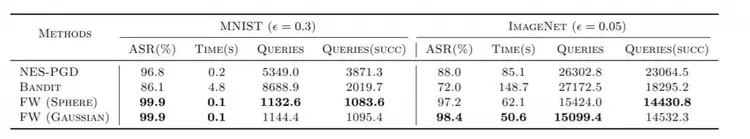 作者从理论上证明了所提的攻击算法具有较快的收敛速率,并在ImageNet和MNIST数据集上验证了所提出算法的性能。对比所有参评的白盒与黑盒攻击基准算法,本文提出的算法在攻击成功率,攻击时间和查询效率上均显著占优。