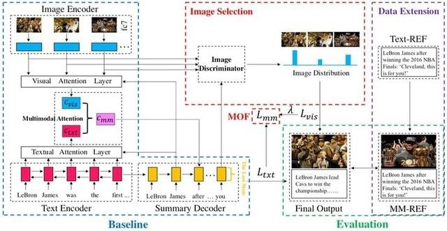 论文《Multimodal Summarization with Guidance of Multimodal Reference》提出了一种基于多模态信息监督的多模态自动摘要模型,该模型以文本和图片作为输入,生成图文并茂的摘要。传统的多模态自动摘要模型在训练过程中,往往以文本参考摘要的极大似然损失作为目标函数,然后利用注意力机制来挑选与文本相对应的图片。这种做法容易带来模态偏差的问题,即模型会倾向于优化文本生成的质量而忽视了图片挑选的质量。论文提出的模型优化了多模态摘要模型的目标函数,即在文本参考摘要的损失函数的基础上增加了图片参考摘要的损失函数。实验发现,在引入了多模态信息监督训练后,多模态自动摘要模型的图片挑选质量得到了显著的改善,文本生成质量也有所改进,从而可以生成更高质量的图文摘要。
