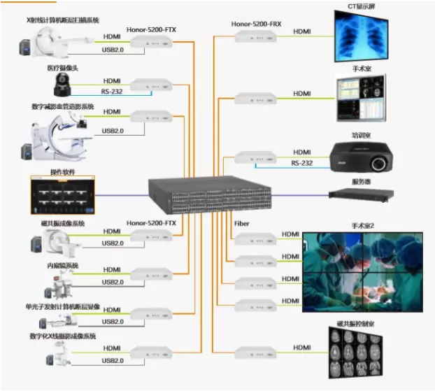 HONOR凯云高动态光纤VPM影像管理平台在医疗诊治中的应用,通过医疗成像系统拾取影像信号,经过光纤传输到VPM图像管理主引擎进行计算分析处理,再传输至医疗会议室、手术室成像大屏、各种放射检验成像大屏等医疗影像显示终端,能够很好的满足当前所需的医疗使用需求。
