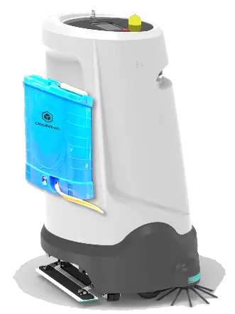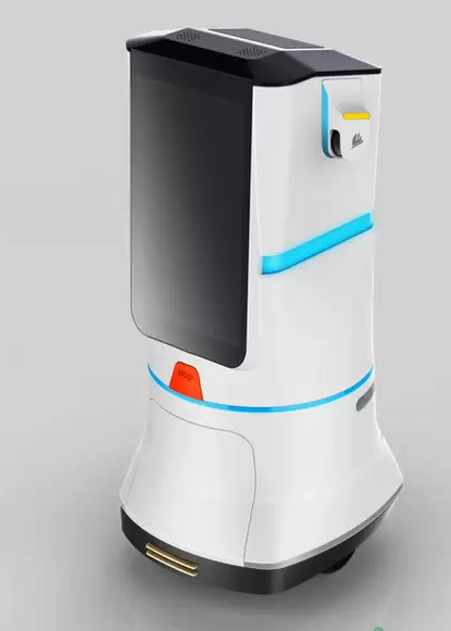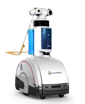 云端智能机器人则各有分工,助力疫情预防和检测:在开放区域,巡逻机器人可实时检测行人体温,识别未佩戴口罩者,自主喷洒物化消毒,广播防疫知识,避免不必要的人员流动,降低传染风险;专门装载了消毒水箱的消毒清扫机器人的活动区域则在室内,它可按规定路线完成消毒清洁任务,最大限度减少交叉传播可能性;办公楼专属的送餐送货机器人智能化程度更高,它搭乘电梯在各楼层之间运送餐饮、文件或物品,减少人力工作和人员接触,规避交叉感染风险。