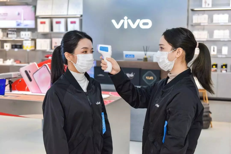 此外,防疫期间vivo门店也做足了安全措施。vivo员工每天上下班都会注意防护、避开疫情区域;每天上班前检测体温、是否咳嗽等健康状态;并且每4小时更换口罩、测量体温、进行店内消毒等。对于前往vivo门店购机的顾客,vivo员工首先会目测顾客口罩佩戴是否标准,对无佩戴者赠予口罩;与顾客介绍产品时,vivo员工会与顾客保持一米距离;当顾客体验离店后,vivo员工还会对样机及顾客接触区域进行消毒,并及时洗手,保障每一位进店顾客的安全。