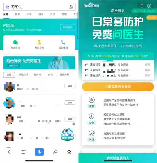 百度“问医生”宣布:向全国用户提供全科室免费咨询