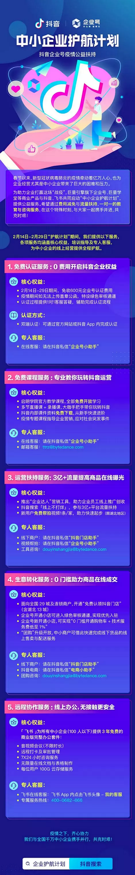 巨量引擎、抖音和飞书推出五项扶持举措,为中小企业战疫护航