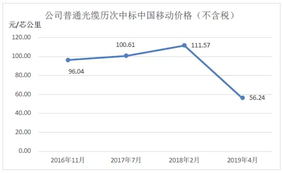 2019年通鼎互联普通光缆中标价下降约50%左右