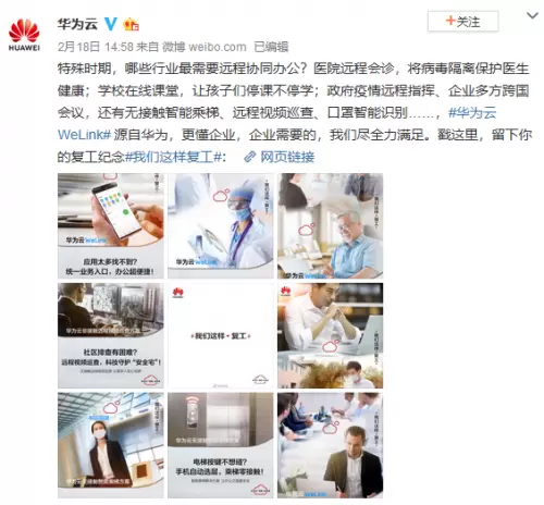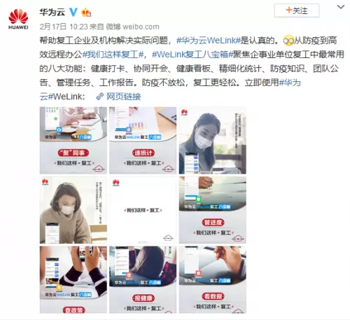 一场疫情,让2020年的春天笼罩在阴霾之中,而破除阴霾的正确方式就是积极应对。从中央到地方都出台了政策措施扶持复工复产,2月中旬开始,不少企业开始了复工之路。由华为云发起的#我们这样复工#话题冲上热搜,截至2月19日,讨论量将近7千条,阅读量1.1亿次。