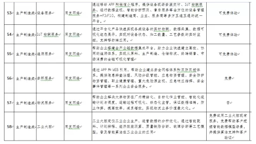 如河北省工业和信息化厅从省内企业上云供给资源池的云服务商中,选出了23家企业的122项云产品,列入《河北省云服务助力企业复工复产免费产品清单(第一批)》,包括云视频、云办公、云设计、云仿真、云管理、云监控等多种云应用,涵盖企业生产管理各个方面。工业企业可在疫情防控阶段免费使用,助力河北工业企业复工复产;广东省工业和信息化厅面向全省工业互联网产业生态供给资源池服务商广泛征集了工业互联网应用产品信息, 发布了《广东省工业互联网服务商支持疫情防控应用产品》;湖南省工业和信息化厅发布了关于充分发挥工业互联网和云计算支撑作用帮助中小企业复工复产共渡难关的通知,并提供《工业互联网和云服务第一批推广服务内容》;江苏省工业和信息化厅发布“关于支持应用工业互联网平台助力企业复产提效的通知”,并提供了 《疫情期免费协同办公云服务产品表》、《工业互联网平台助力复工复产工业APP表》;泉州市工业和信息化局发布了《泉州市工业企业疫情防控软件和信息技术服务产品参考目录》等。