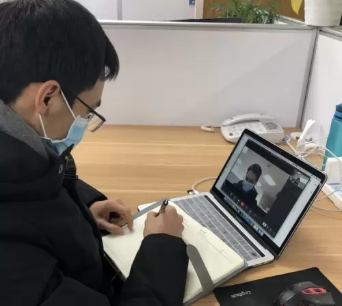 (海亮集团复工后,员工开会采用视频会议减少聚集接触)