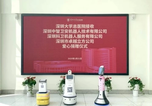 这三款机器人均来自深圳中智卫安机器人技术有限公司(简称:中智卫安)与深圳科卫机器人服务有限公司(简称:深圳科卫)向深大总院的爱心捐赠,双方希望通过科技赋能医疗系统疫情防控,降低医患交叉感染风险,减轻医护人员的压力,为逆行者保驾护航。