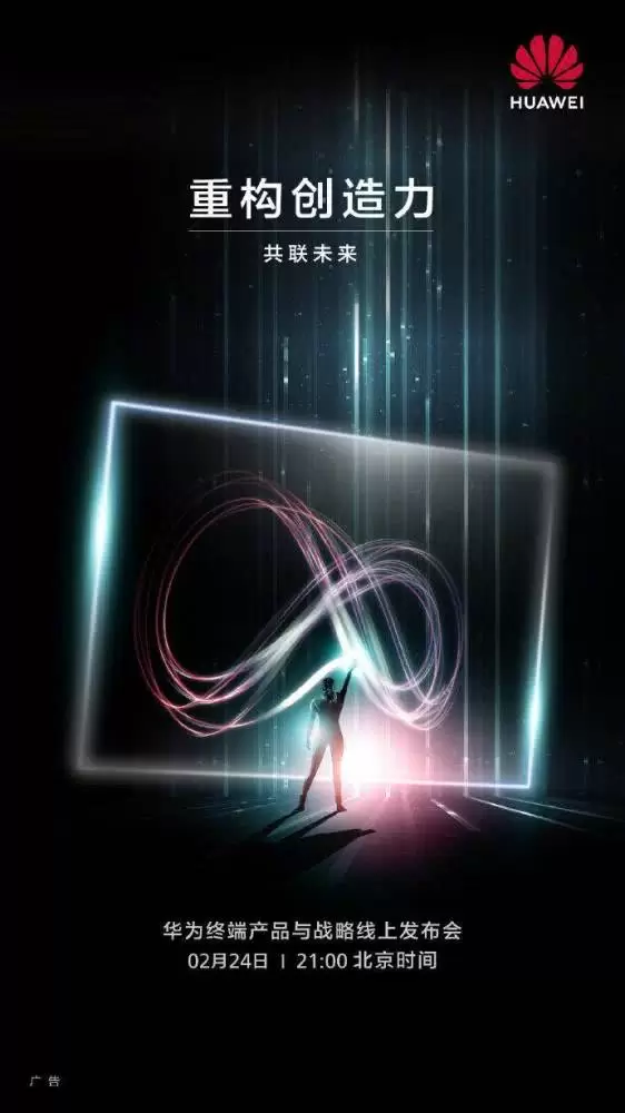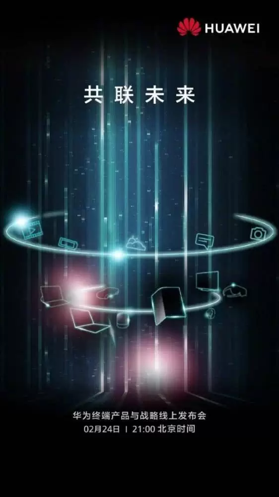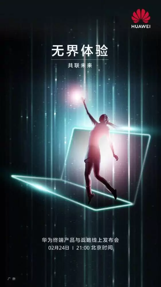 北京时间2月24日晚,华为将在欧洲举行新品发布会,他们已经正式公布了发布会的海报,此次发布会的主体被定义为「共联未来」,而发布会的名称也确定是华为终端产品和战略线上发布会。