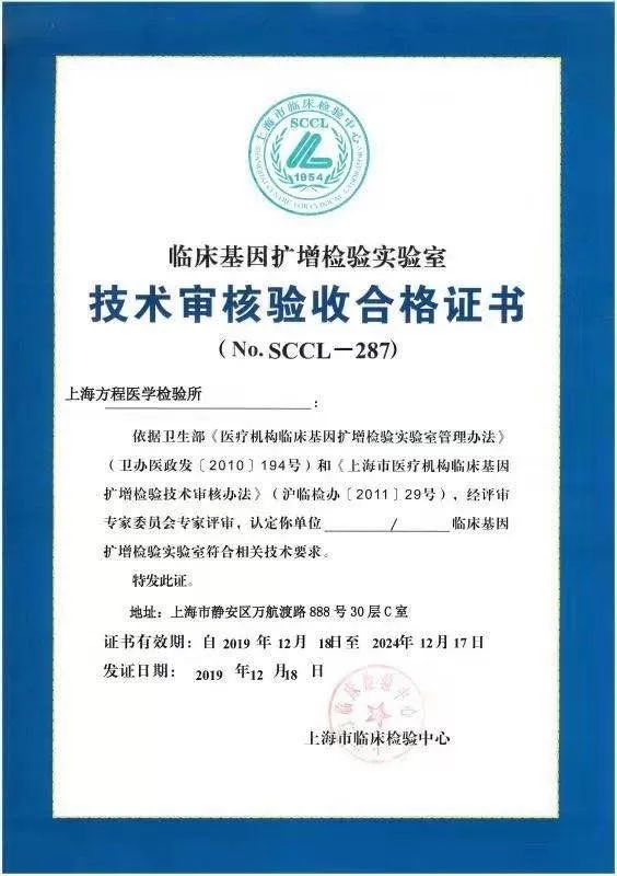 2019年年底,深兰科技旗下上海方程医检所已获得开展新型冠状病毒核酸检测的“入场券”-临床基因扩增检验实验室的技术审核验证合格证书。