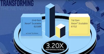 在性能的提升上,第二代至强可扩展处理器金牌处理器相比第一代至强金牌处理器,性能提升达1.36倍,性价比提升1.42倍。同时还是全球唯一一个内置AI加速集成能力的处理器,在深度学习加速中,相比上一代产品性能提升3.2倍,AI性能相比竞品快6倍。