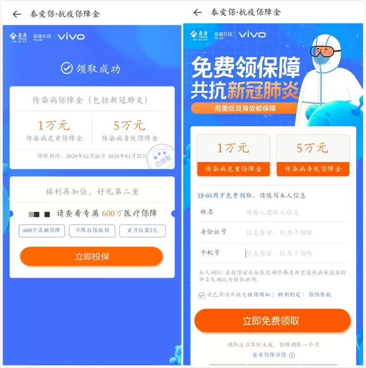 特殊时期,vivo为用户免费提供最高5万元的“疫情保障金”