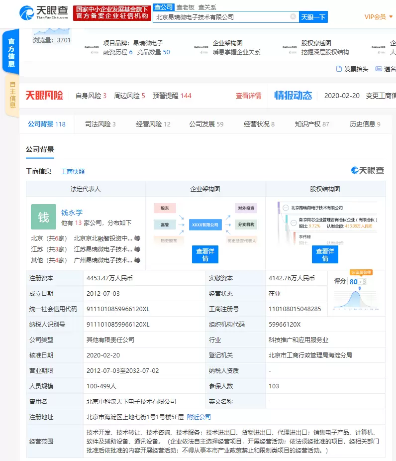 北京昂瑞微电子技术有限公司成立于2012年7月,法定代表人为公司董事长钱永学,公司经营范围包括技术开发、技术转让、销售电子产品、计算机、软件及辅助设备、通讯设备等。