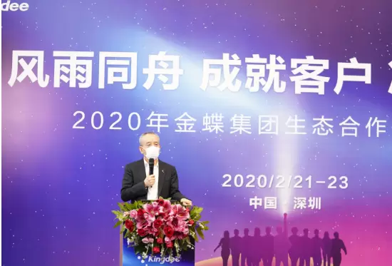 2020年2月21日,在特殊的疫情期间,金蝶集团生态合作伙伴大会以一种别开生面的方式召开。大会以“风雨同舟、成就客户、决胜云端”为主题,以全程直播的形式链接数千家生态伙伴,共商云时代的企业数字化转型。