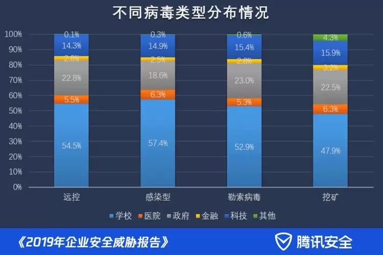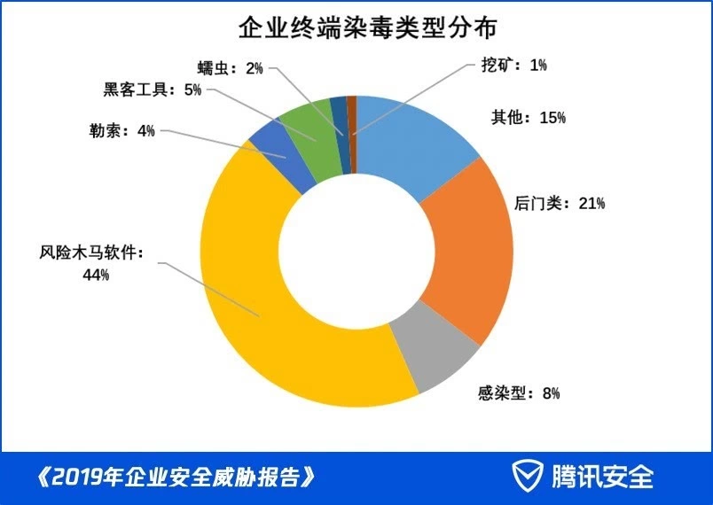 产业互联网时代,大数据、云计算、人工智能等新技术在加速产业发展的同时,也让企业网络安全面临更复杂的挑战。近日,腾讯安全发布《2019年企业安全威胁报告》(以下简称《报告》),对全年企业网络安全整体态势,病毒主要类型、病毒分布行业、攻击形式、传播手段及发展趋势进行全面剖析和研判,并有针对性地提出防御方案。