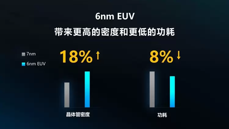 紫光展锐CEO楚庆会上表示,相比上一代7nm,6nm EUV晶体管密度提高了18%,这将使芯片单位面积内集成更多的晶体管,芯片功耗降低8%,可提供更长的续航时间。