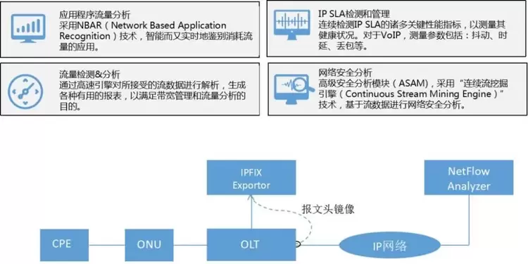 就近部署,真实有效:像MDI、DPI、IPFIX等检测手段,在接近用户的地方进行部署,能更真实反映用户体验,同时方便故障定位,因此部署于OLT是一个比较合适的选择。