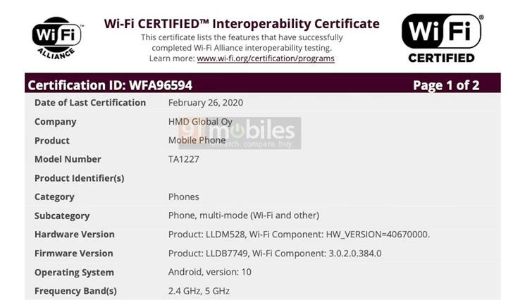 诺基亚三款神秘新机获Wi-Fi认证:均搭载Android 10