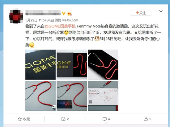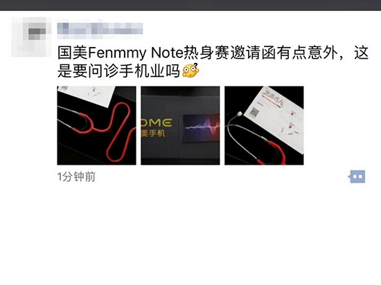 受邀媒体纷纷在微博和朋友圈晒出了“国美Fenmmy Note热身赛”邀请函,并对这一充满创意的邀请礼物做出了自己的猜测。