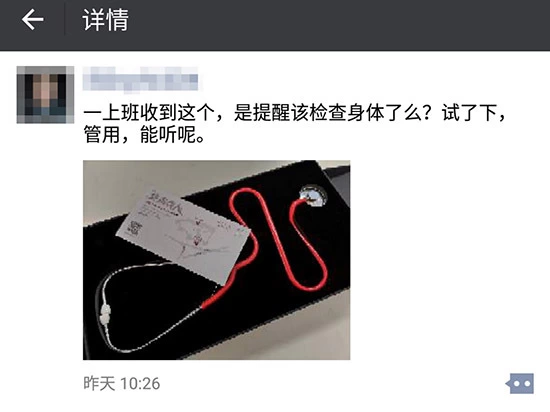 “一上班就收到这个,是提醒该检查身体了么?试了下,管用,能听呢。“