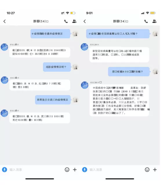 为帮助公众进一步了解防范疫情的相关知识、及时做好防疫措施,疫情问答助手服务也建立了科普知识库。用户可以设置自己需要的语义唤醒方式唤醒小助手,例如“@疫情小助手”,接着询问其防护知识。该服务具备一次唤醒,多轮交互的能力,操作体验更加流畅。