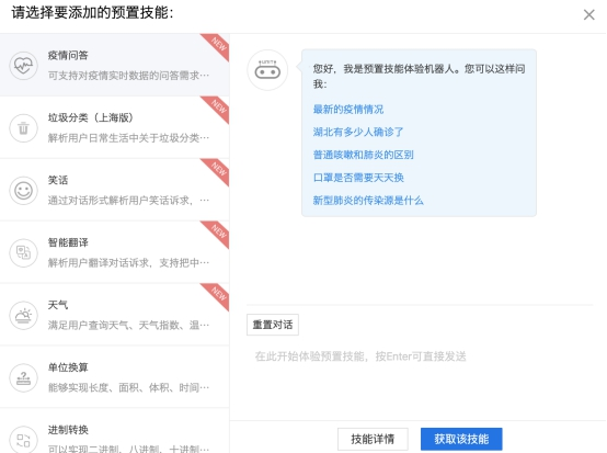(疫情问答预置技能)