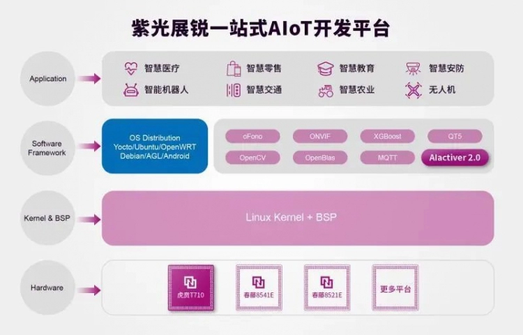 展锐AIoT开发平台综合了先进的开放性架构、高性能AI边缘计算能力、丰富的开发组件,这些将切实解决AIoT应用场景的碎片化、多样化和数据安全三大挑战,有效降低开发者开发成本,缩短产品开发周期,为AIoT开发提供全行业一站式解决方案。