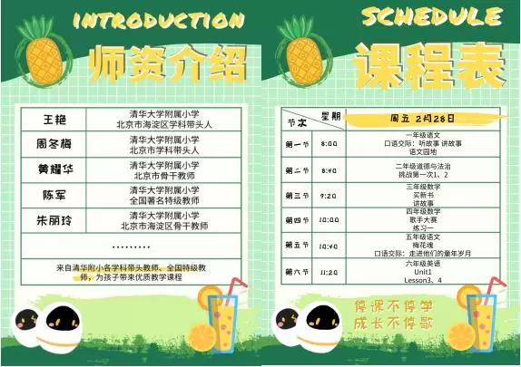 此次空中课堂面向全国小学生,课程内容依据教育部新编小学教材课程标准,匹配课本章节,同时整合全国优质教师资源,课程内容质量高,更符合当下小学生在延期开学期间的需求。主讲的都是来自清华附小各学科的学科带头人和骨干教师,从2月24日开始还在语数外三科之外加入了科学、美术、道德与法治三门课程,丰富了孩子们在家的学习生活。