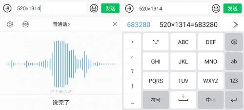 3、语音输入简单算式自动计算,试试语音输入520乘1314看结果