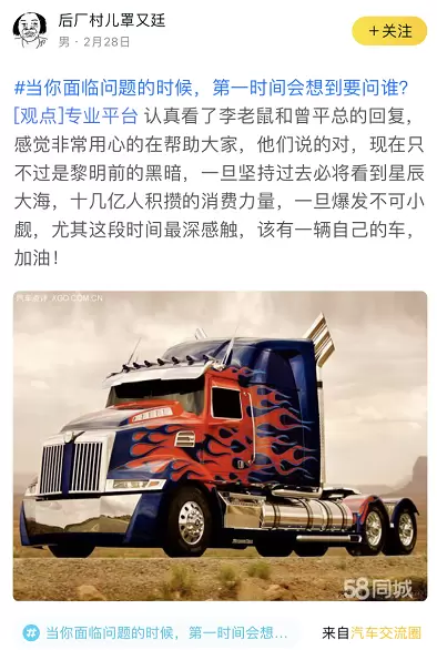 大咖的经验分享,让58部落用户倍感受益,用户“后厂村儿罩又廷”表示,疫情期间最深的感触是,应该拥有一辆自己的车,疫情结束后,二手车行业的消费力量将集中爆发。