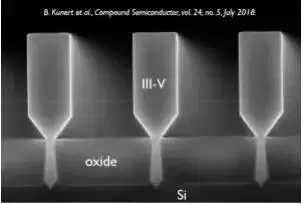 Imec展示可在SOI基底上以奈米脊形生长III-V材料的能力。(来源:Imec/ISSCC)