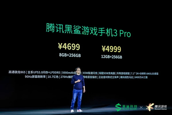 3月3日晚间,5G游戏手机新品——腾讯黑鲨游戏手机3系"升而不同"新品发布会线上直播正式召开,黑鲨科技携手腾讯游戏共同发布了两款搭载全新高通骁龙865移动平台的新一代5G游戏手机旗舰产品——腾讯黑鲨游戏手机3 及腾讯黑鲨游戏手机3 Pro,新款游戏手机在拥有了更为强悍的硬件配置基础上,在散热、网络、显示、续航及操控等方面进行了全面升级。在售价方面,这款诚意满满的腾讯黑鲨游戏手机3售价为3499元起,腾讯黑鲨游戏手机3 Pro售价为4699元起。所有购机用户除了可以在应用商店内领取各大腾讯游戏专属福利之外,还可以获得由腾讯游戏玩家成长平台心悦俱乐部赠送的一年心悦会员,享受各类游戏特权的同时,还可以在手机上免费领取心悦俱乐部的游戏专区礼包!