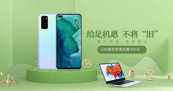 荣耀5G新品也同样迎来巨大优惠!购买荣耀V30、V30 Pro至高优惠300元,2999元起!双模5G,专业电影镜头,麒麟990,40W超级快充等等亮点,不容错过!另有荣耀20青春版低至1199,非常划算!