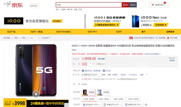 京东手机女神节至高24期免息 每天5.5元把5G新品iQOO3抱回家