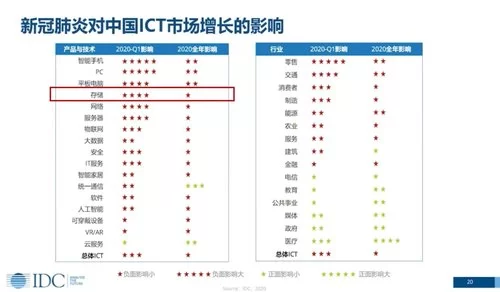 IDC预测,2020年第一季度IT整体市场下降约10%,这将是中国ICT市场首次出现季度10%的下降,存储市场预计将有15%左右的下降。