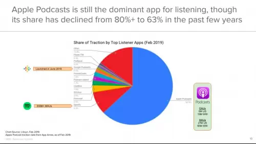 美国市场的数据预测显得积极。2019年11月,市场研究公司Forrester发布《2020内容付费》预测,播客将成为下一个10亿美元的媒体市场,“这将是非常显着增长”,Forrester MediaPost 指出。Edison Research的《The Podcast Consumer 2019》,Vlog在音频收听方面的份额在五年内翻了一番以上(自2014年以来增长了122%)。总体而言,大约有9000万美国人,大约每个12岁以上的美国人中的不到三分之一,每月都会收听播客。