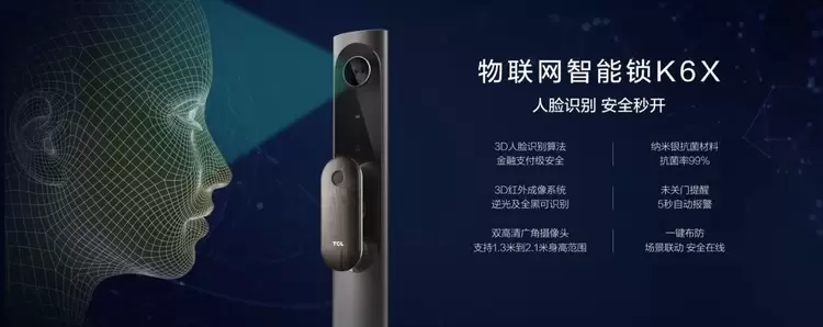 近日,在TCL 2020春季新品发布会上,TCL发布了一款针对物联网智能家居的智能门锁产品——TCL K6X,由商汤科技与TCL智能家居联合开发优化3D人脸识别技术,可帮助用户实现“无接触”式开门。