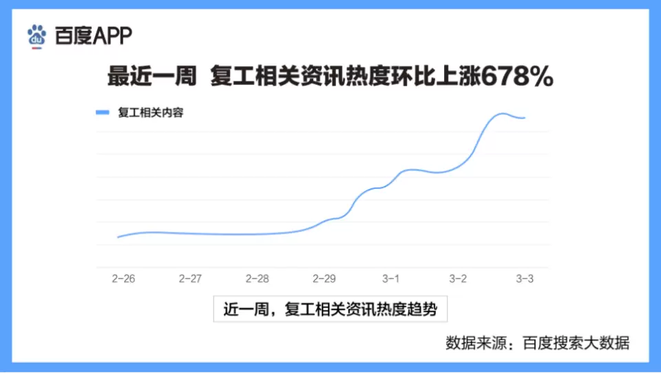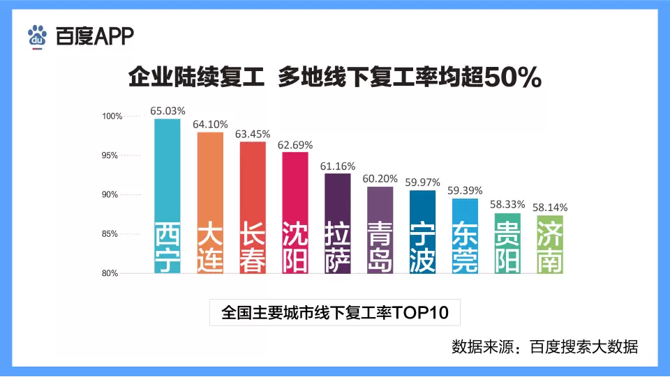 百度发布复工搜索大数据报告:多地线下复工率超50%,云复工仍火热