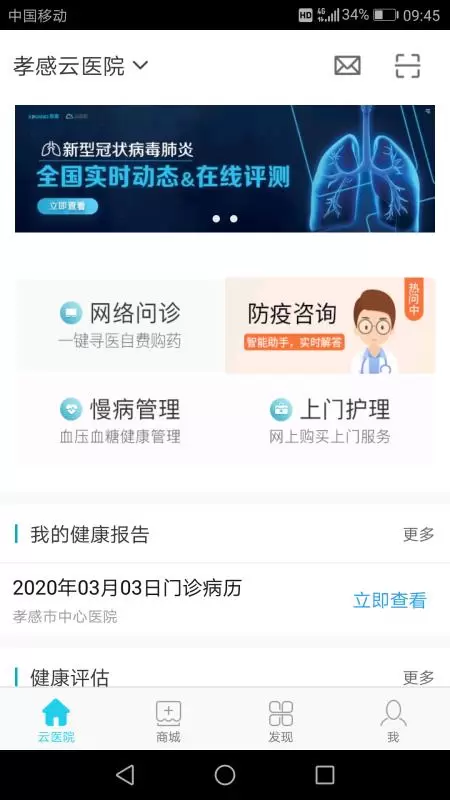 据悉,该云平台首批入驻医院为孝感市中心医院、孝感市第一人民医院、孝感市中医院等13家医院,有270余名医师可提供专业的线上服务,已开设了内科、外科、妇科、儿科、精神等多个科室。