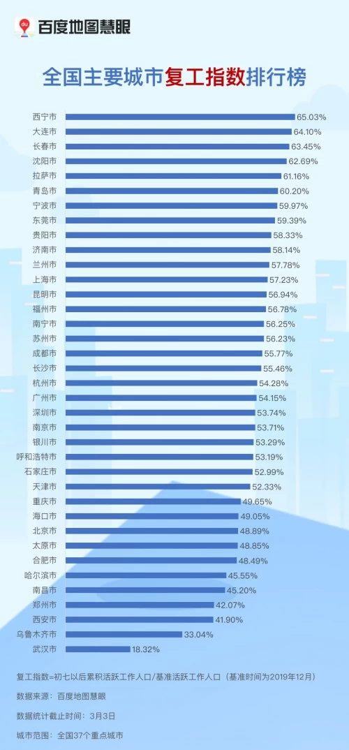 百度地图:全国范围复工指数已达57.42% ,复工复产按下“加速键”