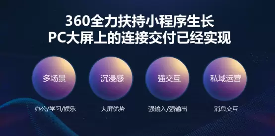 教育学习的属性,决定了在PC(大屏)终端才能获取良好的沉浸式体验。PC互联网对于在线教育行业的价值不言而喻,但是如何在流量竞争白热化的当下把握更多的用户?如何增强PC端连接用户的能力,进行深度运营?这些问题成为在线教育机构关注的核心。2019年7月宣布公测的360小程序平台,在PC大屏场景帮助开发者深度挖掘流量价值,显著提升开发者的私域用户运营能力。