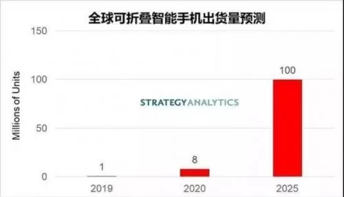 现如今,折叠手机的市场比业界预期的还要火爆。据Strategy Analytics预计,全球可折叠智能手机的出货量将从2019年的不足100万部增长到2025年的1亿部。如此关键时刻,谁最先在高价值的终端市场占先机,谁将领跑整个5G终端市场。