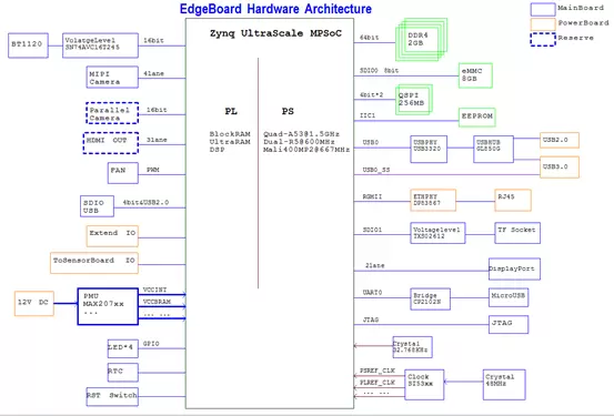 基于MPSoC平台系统顶层框图,EdgeBoard计算卡的系统框架设计如下: