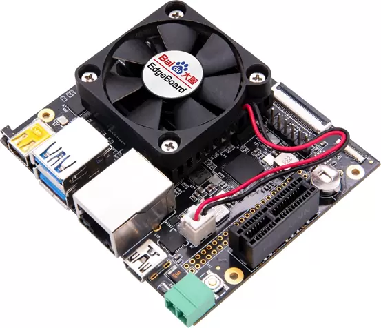 EdgeBoard是基于Xilinx Zynq UltraScale+ MPSoC系列芯片打造的计算卡,芯片内部集成ARM处理器+GPU+FPGA的架构,既具有多核处理能力、也有视频流硬解码处理能力,还具有FPGA的可编程的特点。内置Linux 4.14.0系统和深度学习预装环境,与百度大脑模型定制平台(AIStudio、EasyDL、EasyEdge)深度打通,实现模型的训练、部署、推理等一站式服务。