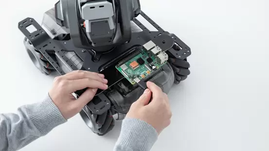 此外,RoboMaster EP 还支持外接“Micro:bit”、“Arduino”、“树莓派”等第三方开源硬件,且能利用自身电池为它们供电。同时,通过人工智能芯片平台 Jetson Nano 和 SDK 进行模型训练和场景识别,RoboMaster EP还能帮助学生在实践中更深入地理解人工智能运作原理。