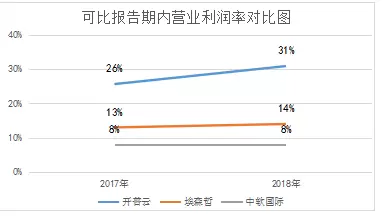 营业利润率处于行业高水平。从营业利润率(Operating Margin)上看,过去三年,开普云的营业利润率分别为26%、31%和30%。可比报告期内营业利润率均远远高于中软国际和埃森哲。
