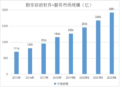 1.「数字政府」趋势带来近百亿增量市场。为打破不同部门之间由于数据闭塞所形成的“信息孤岛”,政府大力推行互联网智慧门户集约化建设和政务服务平台一体化建设,加快构建全国一体化网上政务服务体系,推进跨层级、跨地域、跨系统、跨部门、跨业务的协同管理和服务。两者均带来了可观的行业增量。粗略估计,该增量市场规模近百亿。