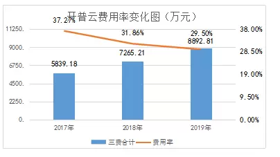 2017-2019年,随着收入规模的增长,开普云的费用率从37.27%下降至29.5%,下降近7.77个百分点。