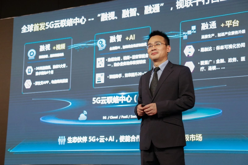 华为全球技术服务部副总裁胡建宇3月9日在华为产品与解决方案发布会上,发布业界首个5G视频交互云联络中心产品,该产品是企业面向用户视频化服务协同的新一代视频云客服产品,具有融视、融智、融通三个领先优势,是助力运营商5G商业成功的重量级产品!