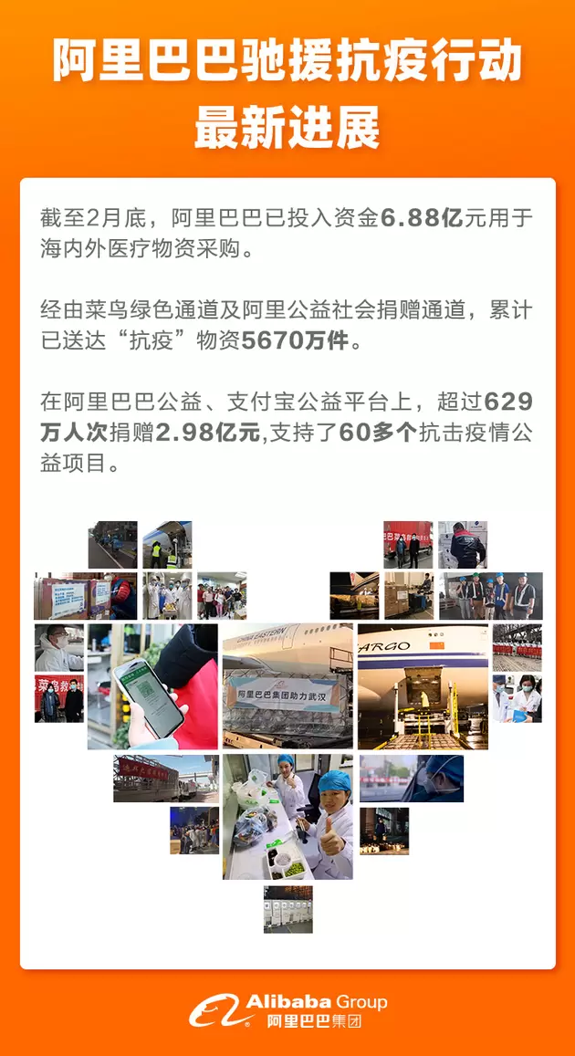 阿里公布10亿抗疫基金进展:一个月花6.88亿支援抗疫